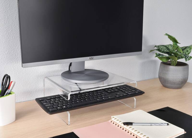 Extra tip: draai aan het eind van de dag je toetsenbord op zijn kop en laat hem zo liggen. Hierdoor vallen kruimeltjes e.d. uit je toetsenbord en blijft deze langer schoon. Gebruik je een handige monitorverhoger, dan bestaan er ook modellen waaronder je je toetsenbord zo onder kan schuiven. ZieZo.... opgeruimd staat netjes.