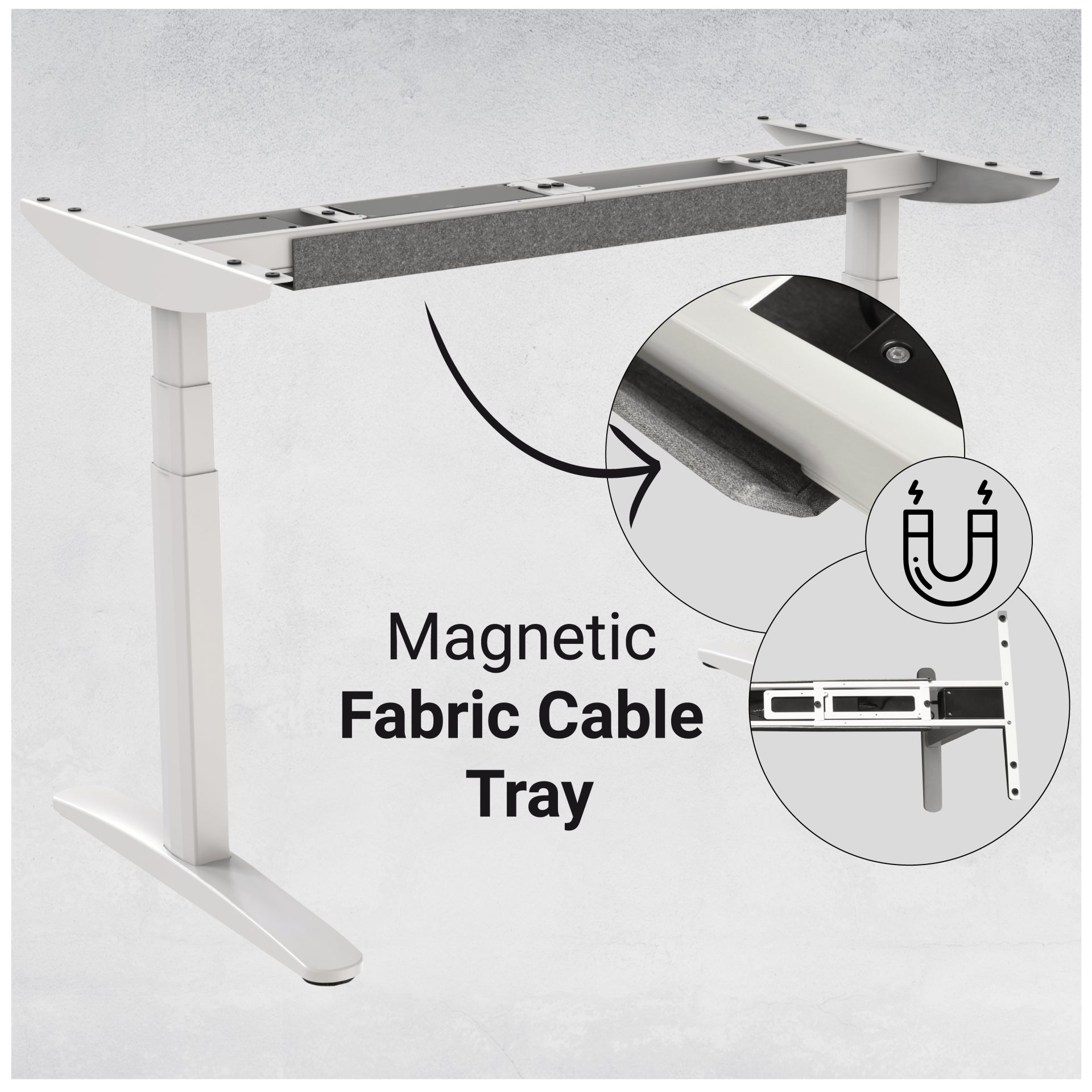 Daarnaast wordt ze geleverd met een unieke magnetische kabelgoot zodat alle kabels meteen netjes weggewerkt zijn onder het bureau. Omdat design ook belangrijk is zijn de onderstellen voorzien van een eigentijds en strakke vormgeving in een monotoon kleurstelling. Hierdoor passend onder elk type bureaublad.
